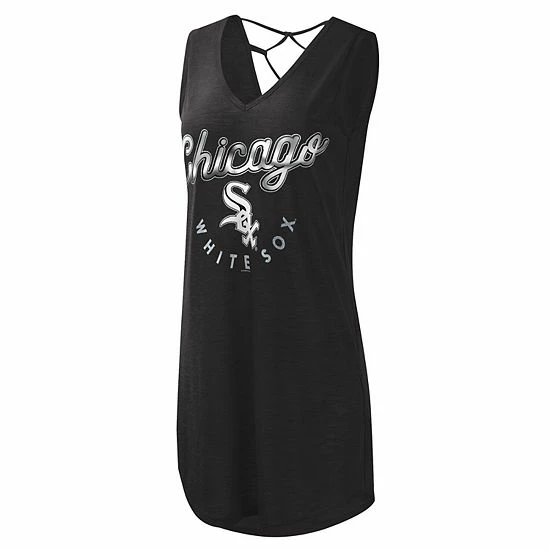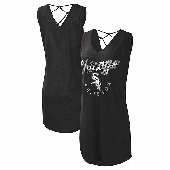 Keep your Chicago White Sox style on point at the beach or pool with this Game Time Beach Cover-Up dress from G-III 4Her by Carl Banks. It features sleek Chicago White Sox graphics printed on the front and an elegant lattice design on the back. Plus, the slub design gives this V-neck dress a translucent look.