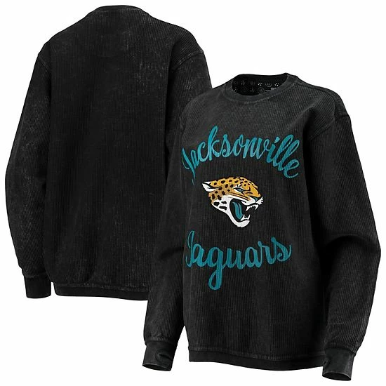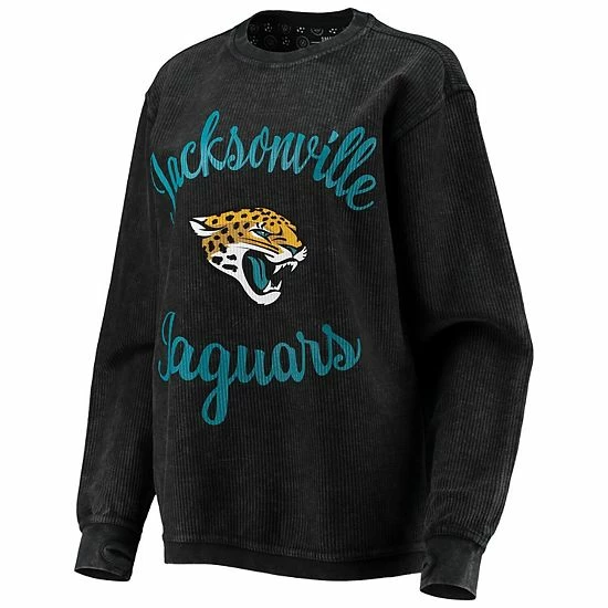 Stay cozy on Jacksonville Jaguars game day in this Comfy Cord pullover sweatshirt from G-III 4Her by Carl Banks. It features vivid Jacksonville Jaguars graphics printed on vintage-looking fabric. Thumbholes also help keep the sleeves in place for a more comfortable fit.