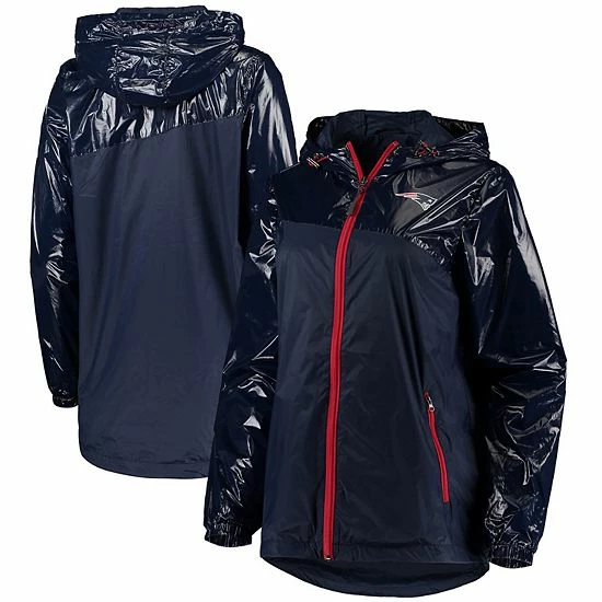 Defend yourself against rainy weather in this New England Patriots Double-Coverage full-zip jacket from G-III 4Her by Carl Banks. It features an adjustable hood to block out the elements and zippered pockets to shield your essentials. Contrast-color details also highlight the subtle New England Patriots graphics.