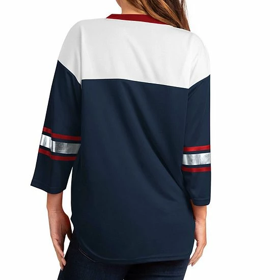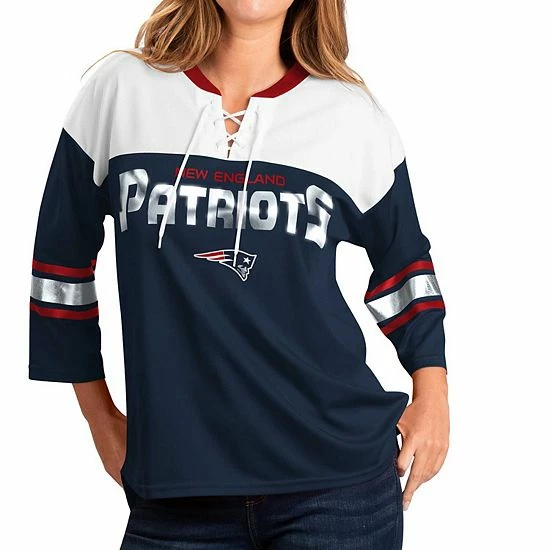 Put eyes on your New England Patriots pride with this Double Team Lace-Up T-shirt from G-III 4Her by Carl Banks. It features three-quarter sleeves with dropped shoulders for ease of movement. In addition, the signature New England Patriots graphics and colors let everyone know who you root for on game day.