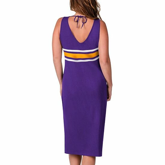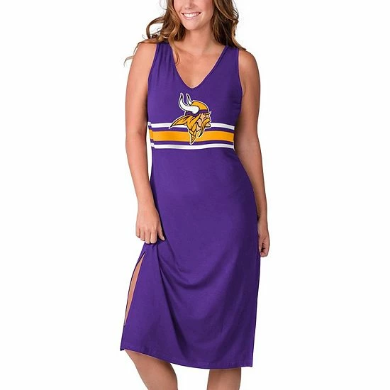 Flaunt your passion for the Minnesota Vikings when you wear this stylish Kick-Off maxi dress from G-III 4Her by Carl Banks. Its alluring design features a V-neckline, slit down the side and tie closure in the back. The printed Minnesota Vikings logo is also accentuated by a stripe pattern, so your fandom doesn’t go unnoticed.