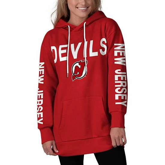 Extend how much warmth your apparel creates with this New Jersey Devils Extra Inning pullover hoodie from G-III 4Her by Carl Banks. It features an adjustable hood that blocks the chilly air and a classic pouch pocket for heating up hands. In addition, large New Jersey Devils graphics printed across the front and down both sleeves make your team devotion unquestionable.