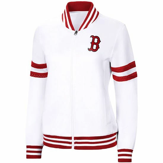 Display your Boston Red Sox fandom with an old-school vibe when you sport this Pre-Game track jacket from G-III 4Her by Carl Banks. It features the official Boston Red Sox logo on the front and the team name on the back. In addition, the full-zip design will help you stay at just the right temperature.