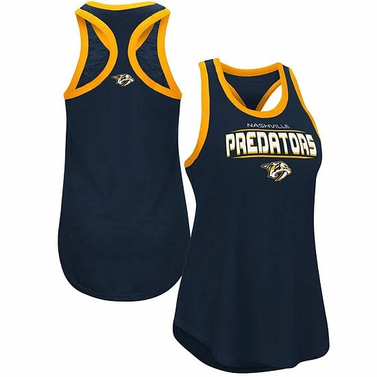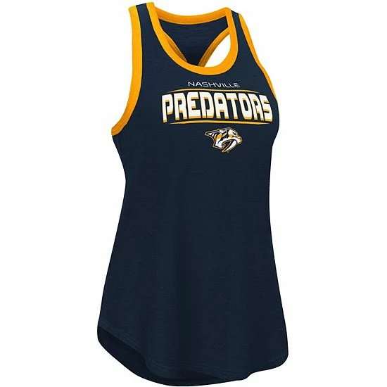 Put this trendy Showdown tank top from G-III Sports by Carl Banks in your rotation of Nashville Predators gear. Featuring a racerback cut, this top features a vibrant Nashville Predators design with contrast-color trimming for a touch of charm. Slub fabric gives you a more translucent look.
