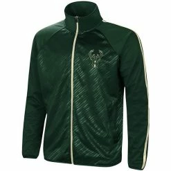 Men’s G-III Sports By Carl Banks Green/White Milwaukee Bucks Zone Blitz Tricot Full-Zip Track Jacket