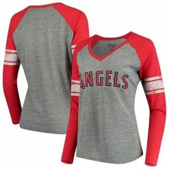 Women’s G-III 4Her By Carl Banks Gray/Red Los Angeles Angels Goal Line Raglan V-Neck T-Shirt