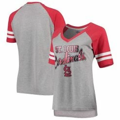 Women’s G-III 4Her By Carl Banks Gray/Red St. Louis Cardinals Goal Line Raglan V-Neck T-Shirt