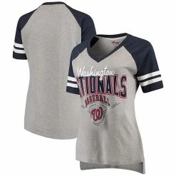 Women’s G-III 4Her By Carl Banks Heathered Gray/Navy Washington Nationals Goal Line V-Neck T-Shirt