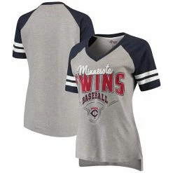 Women’s G-III 4Her By Carl Banks Heathered Gray/Navy Minnesota Twins Goal Line Raglan V-Neck T-Shirt
