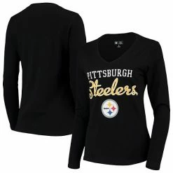 Women’s G-III 4Her By Carl Banks Black Pittsburgh Steelers Post Season Long Sleeve V-Neck T-Shirt